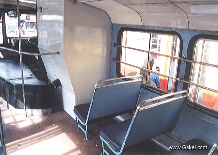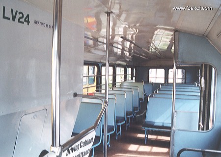 Two photographs of the back of the bus. One more 2-seater is installed after the removal of the staircase. The bus offers 44 seats after the conversion.